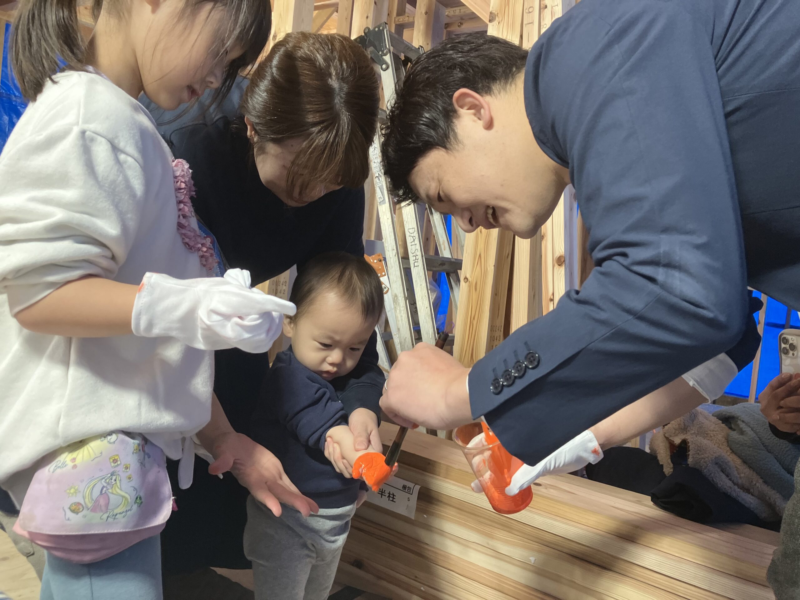 上棟の際、DAISHUではオリジナルセレモニーの「手形式」でお祝いします。